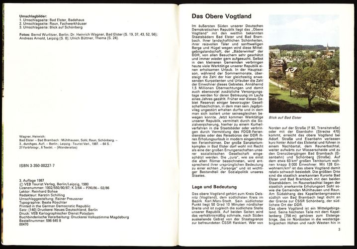 Bad Elster, Bad Brambach, Wanderatlas, Heinrich Wagner, Tourist Verlag 1987