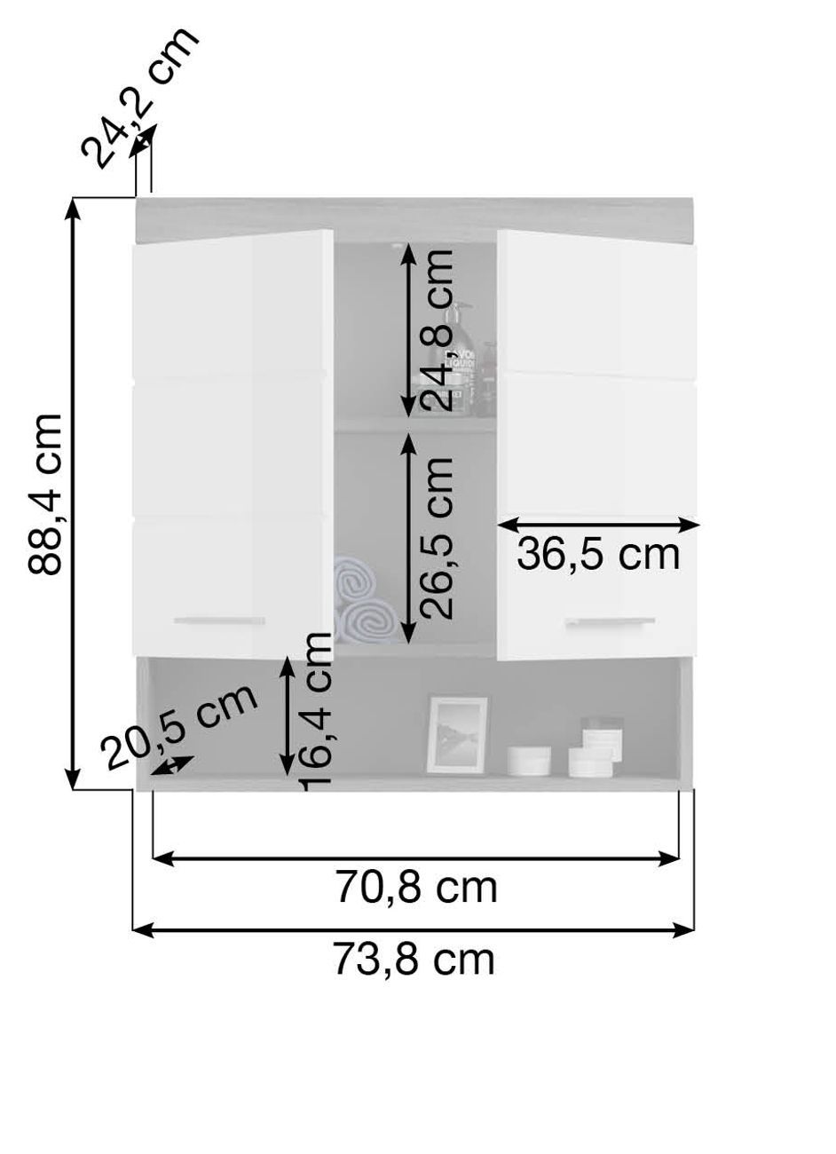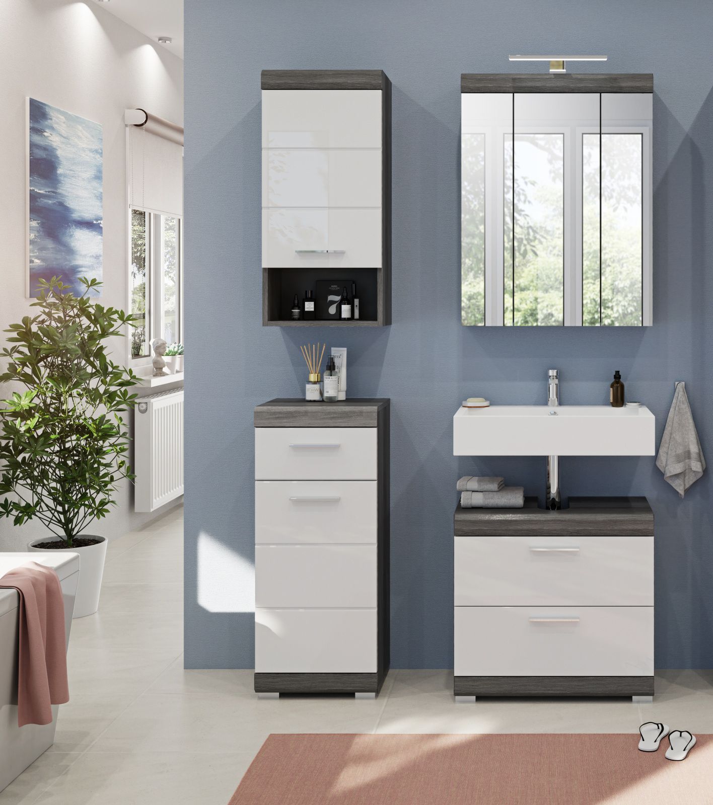Bad Hängeschrank Badezimmer Schrank hängend in weiß Hochglanz grau 2 Türen Shawn