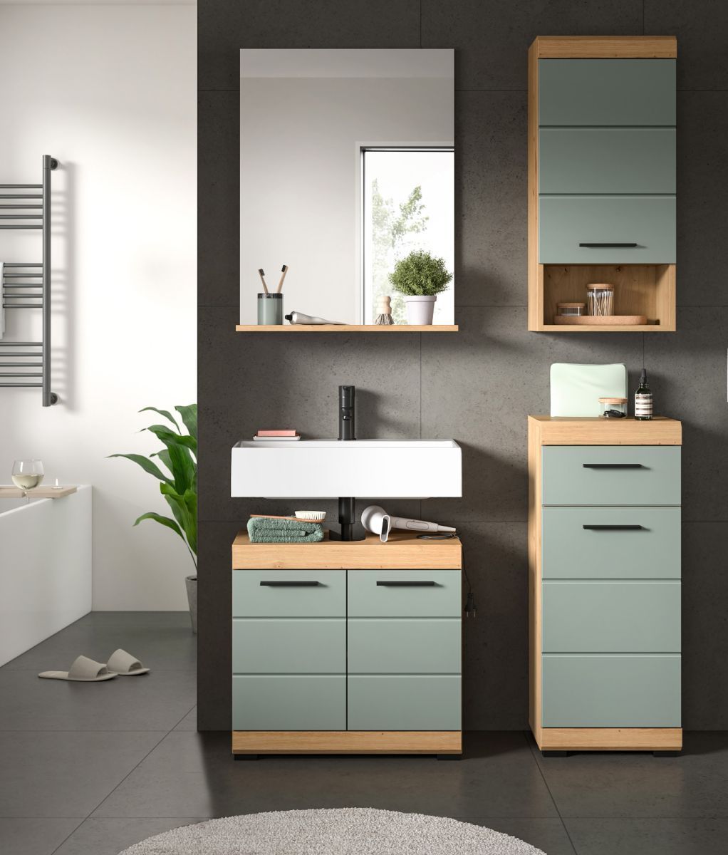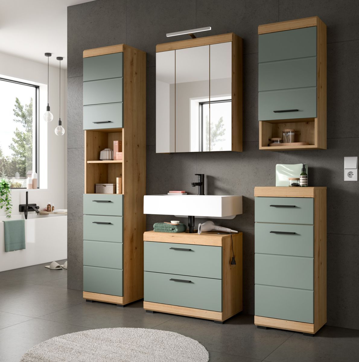 Bad Hängeschrank Badschrank hängend Salbei grün Eiche Badezimmer Shawn 37 x 79 cm