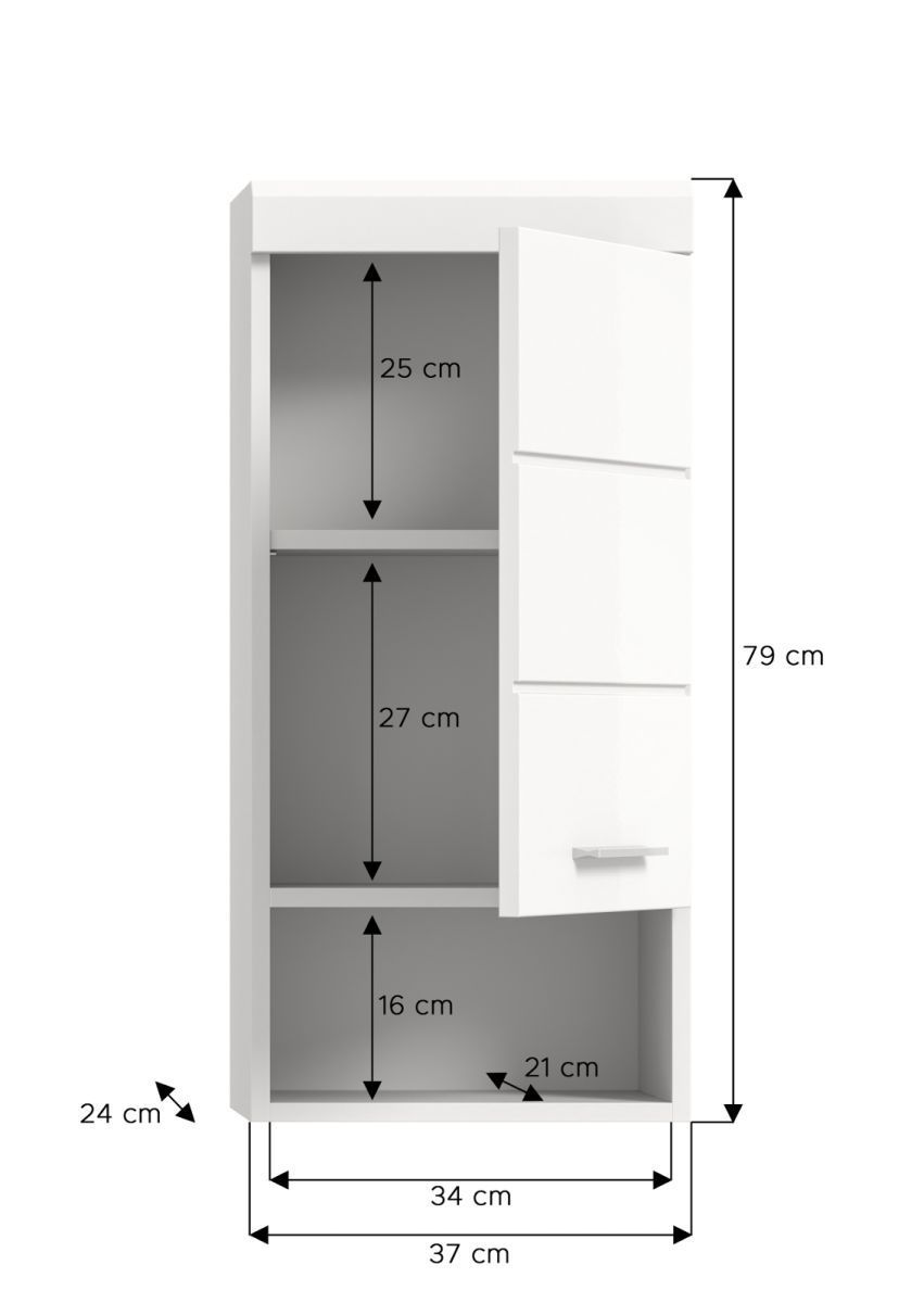 Bad Hängeschrank Badschrank hängend weiß Hochglanz Badezimmer Möbel Shawn 37 x 79 cm