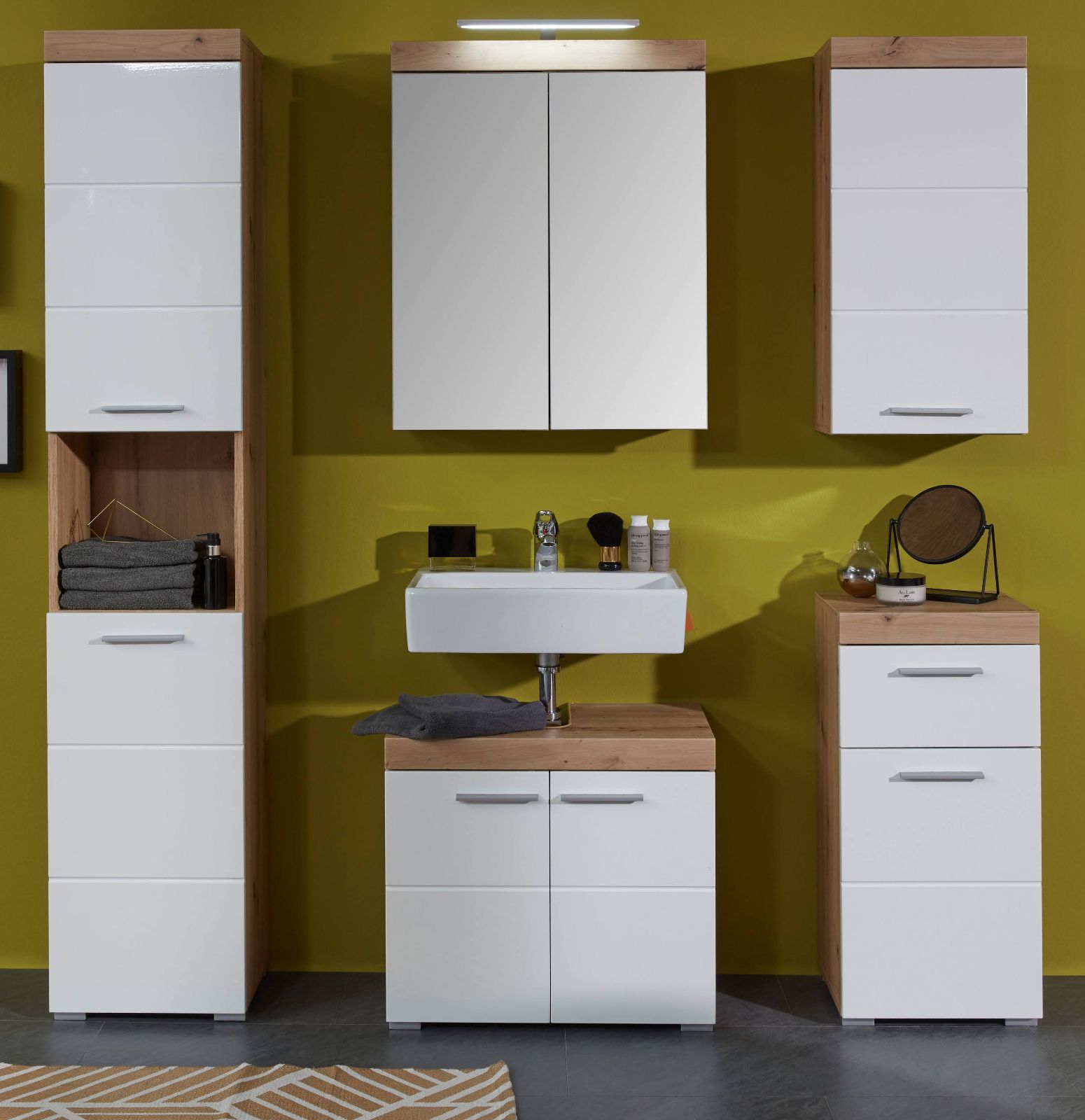 Trendteam Bad Hängeschrank Badschrank in weiß Hochglanz Ast Eiche Badezimmer Hänger Amanda