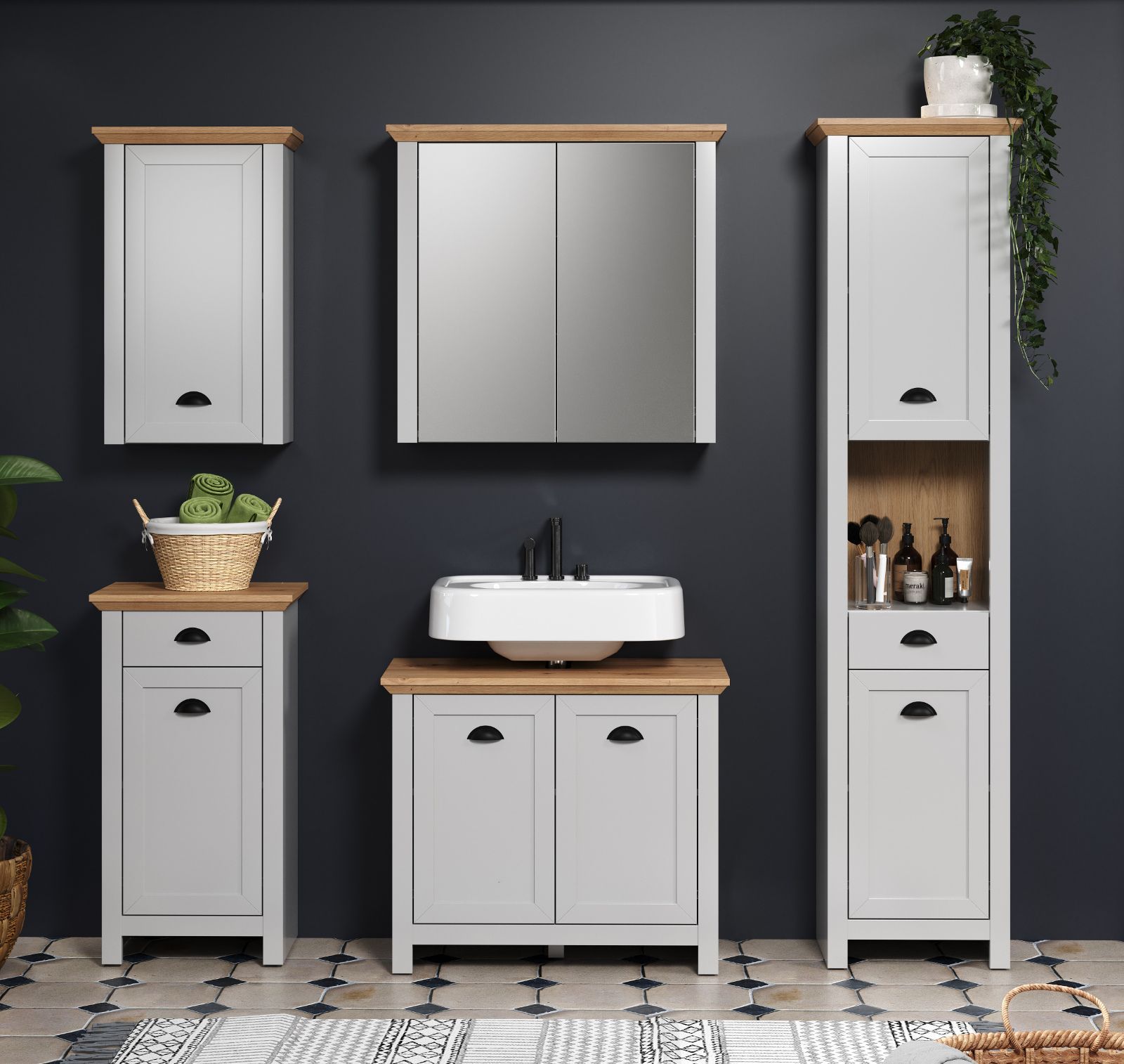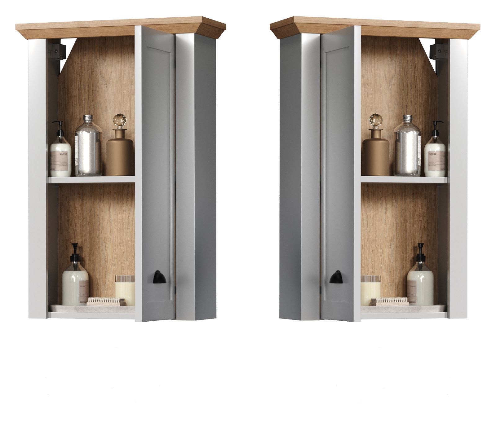 trendteam Bad Hängeschrank Schrank grau Eiche Landhaus Badezimmer Ober Hänger Landside