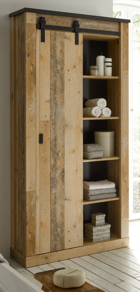 Bad Hochschrank Badezimmer Mehrzweck Schrank 90x200 Schiebetür Used Wood Stove