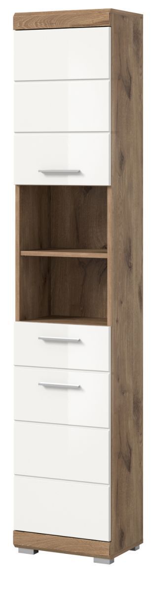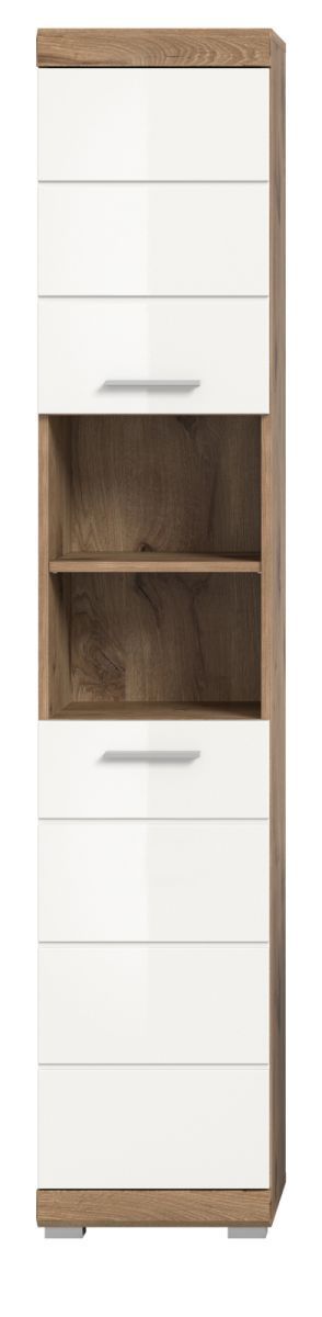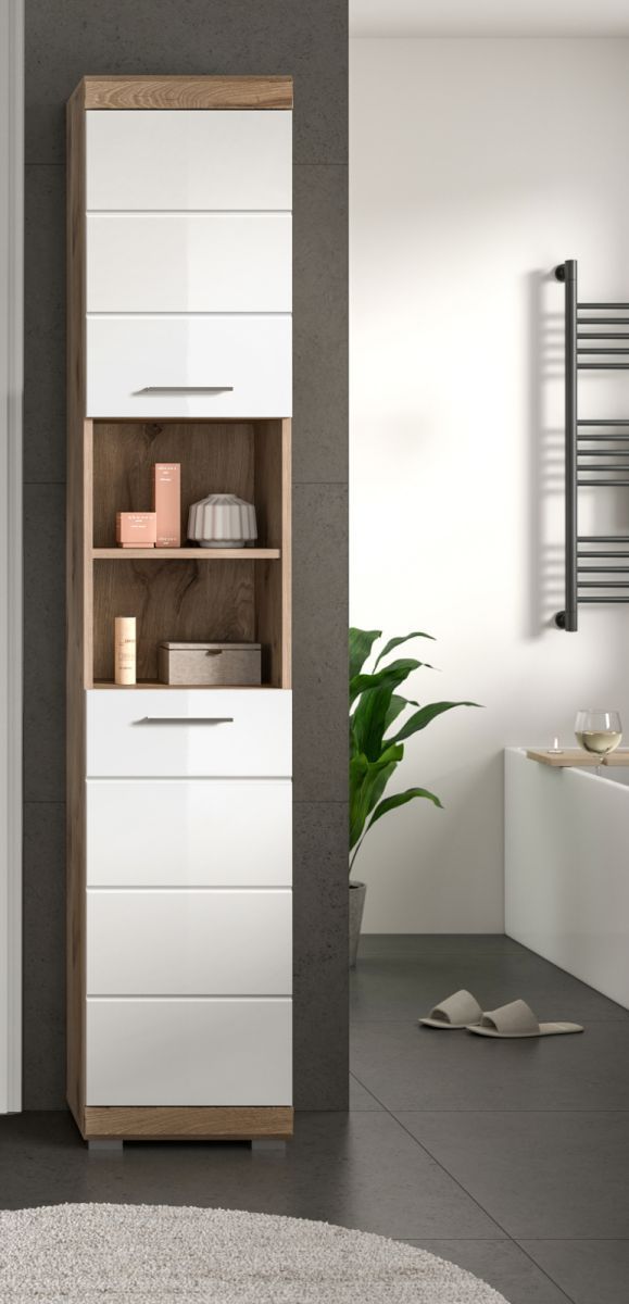 Bad Hochschrank Badezimmer Schrank weiß Hochglanz Eiche 37 x 191 cm Willow