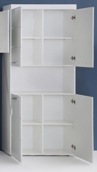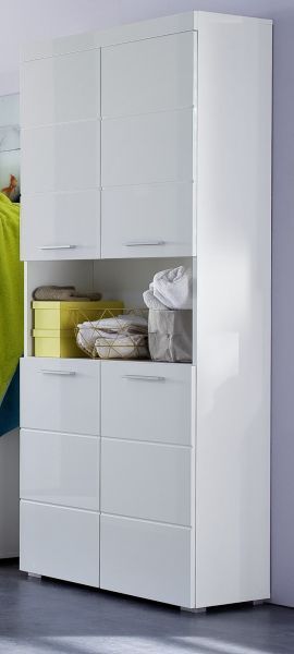 Trendteam Bad Hochschrank in weiß Hochglanz Badezimmer Schrank 80 cm 4-türig Badmöbel Amanda