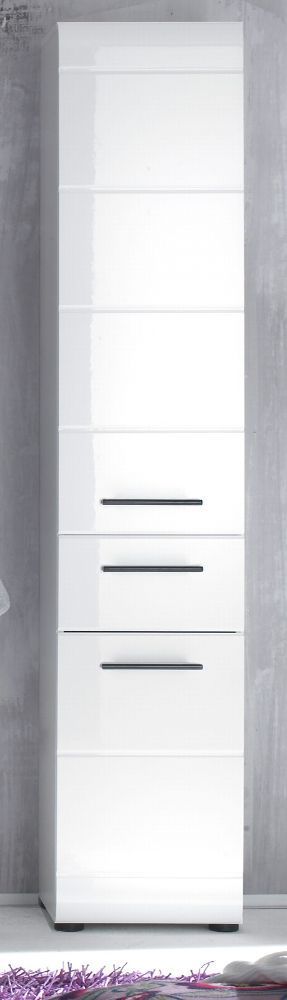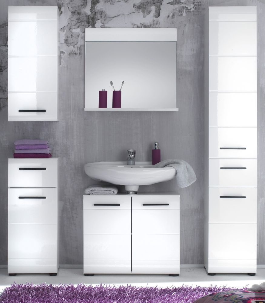 Trendteam Bad Hochschrank weiss Hochglanz Badezimmer Schrank Badschrank 2-türig Möbel Skin