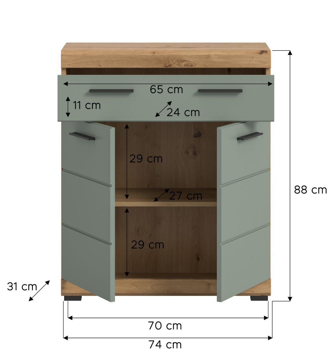 Bad Kommode Badezimmer Unterschrank Salbei grün Eiche Badkommode Shawn 74 x 88 cm