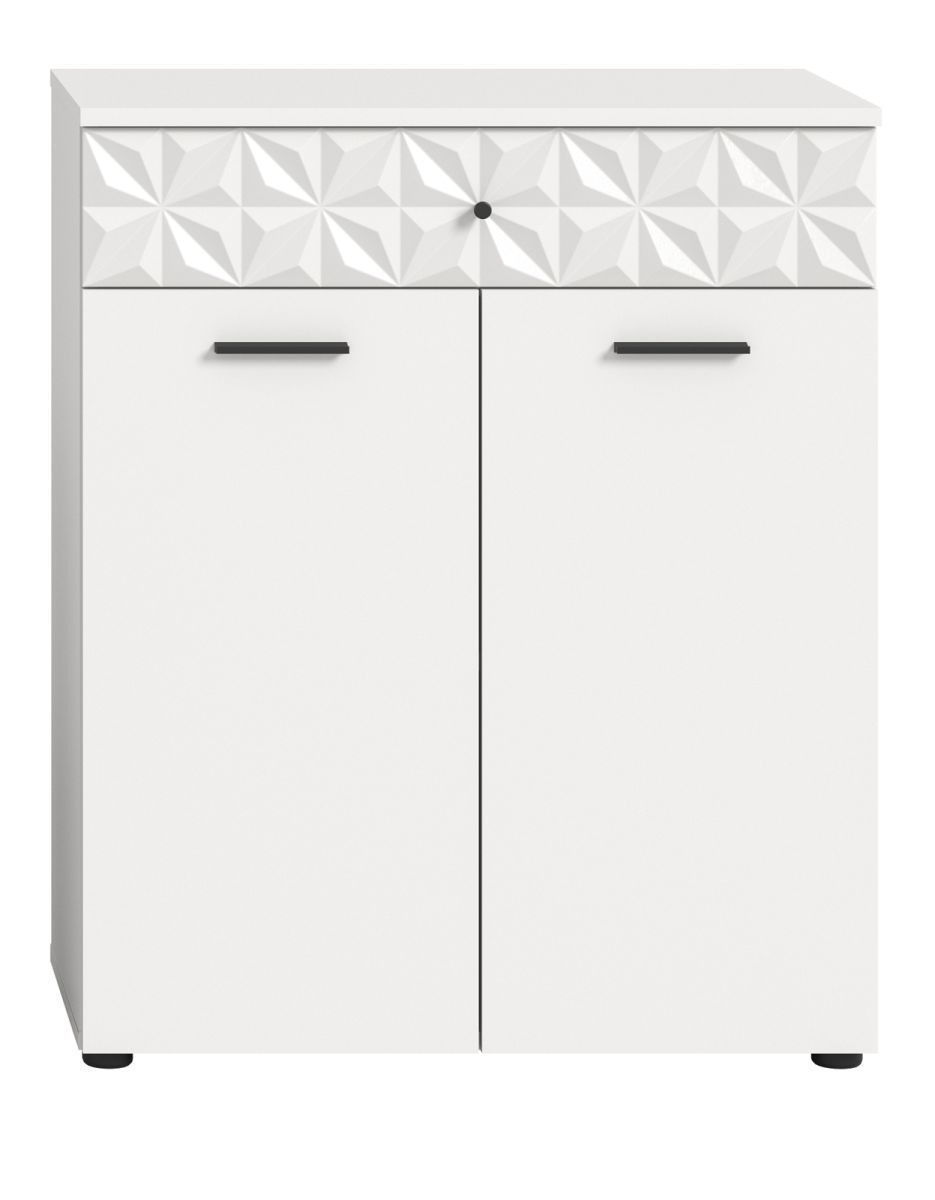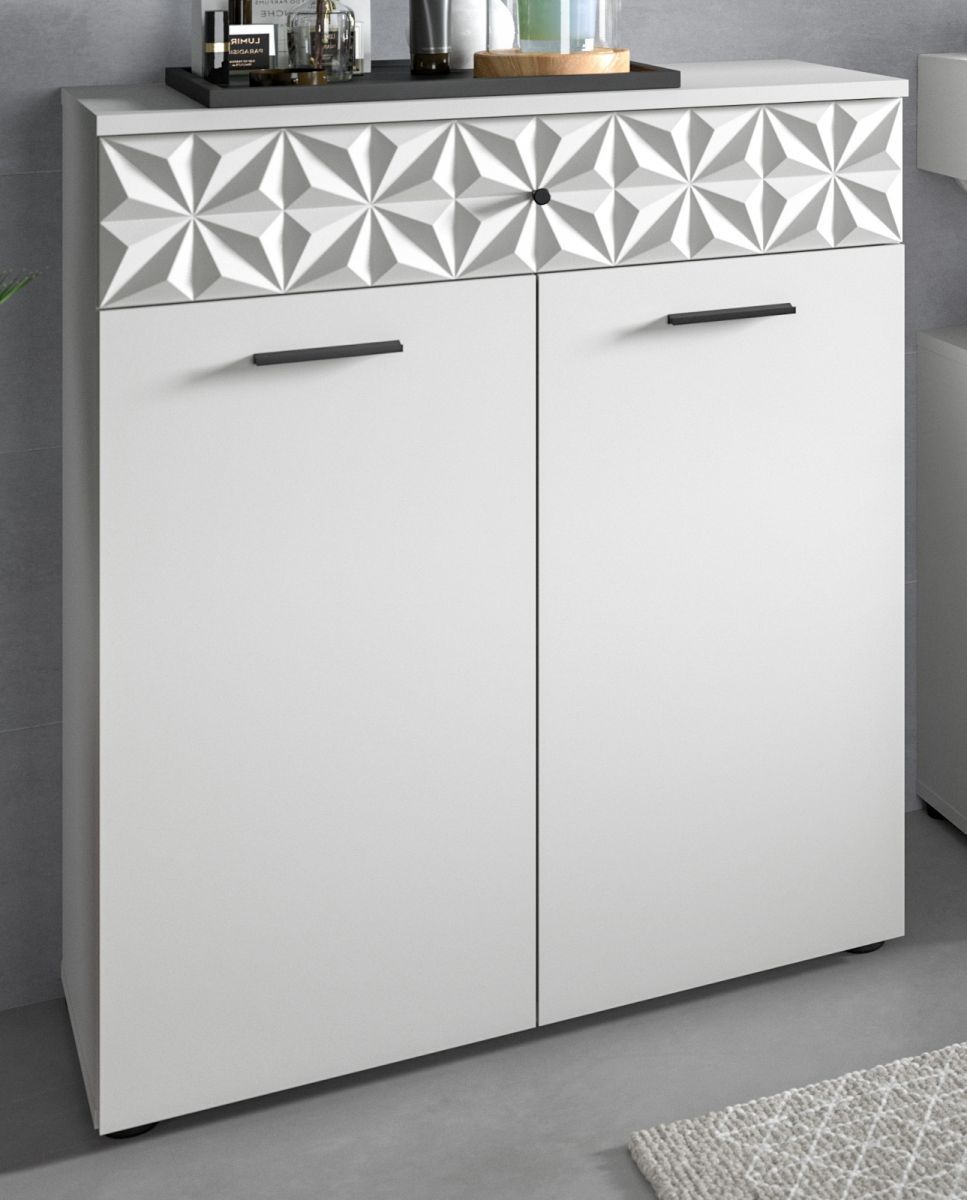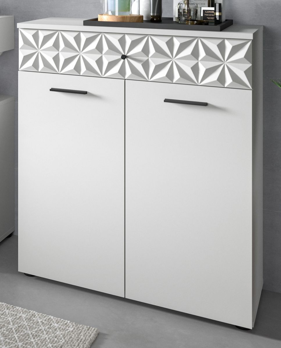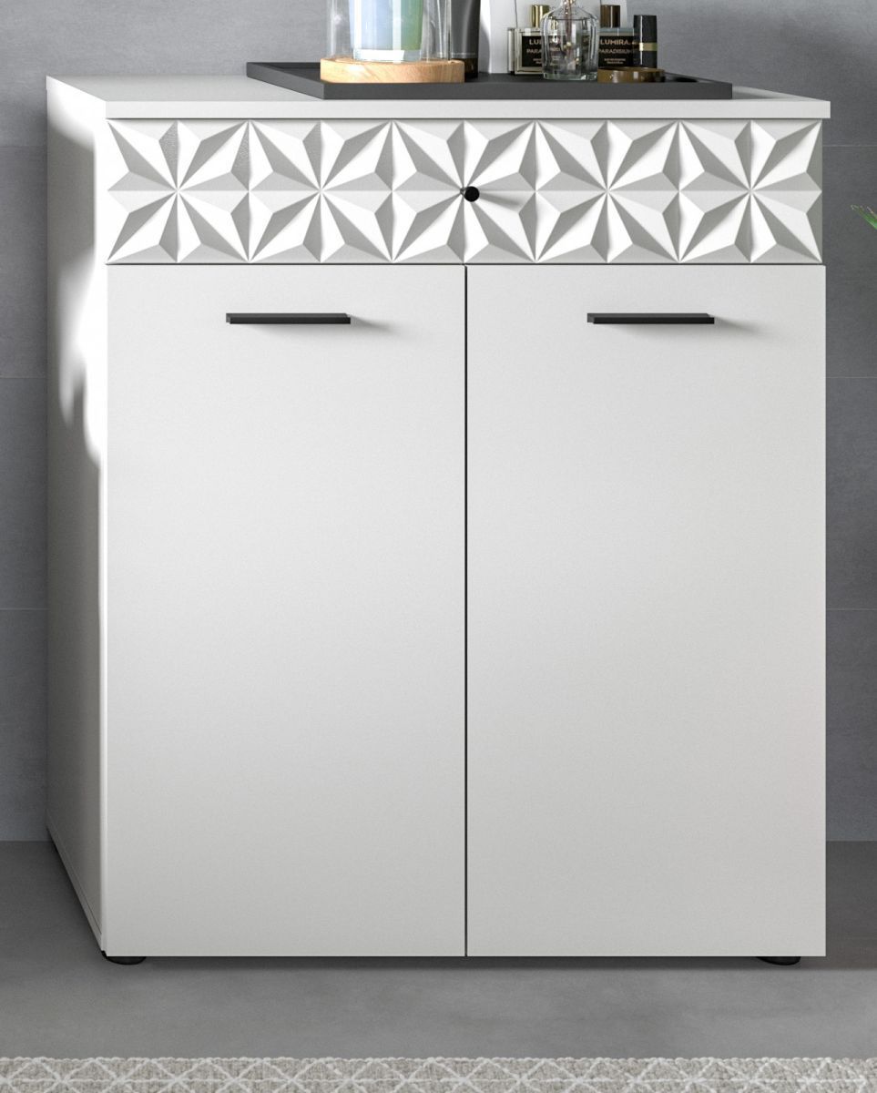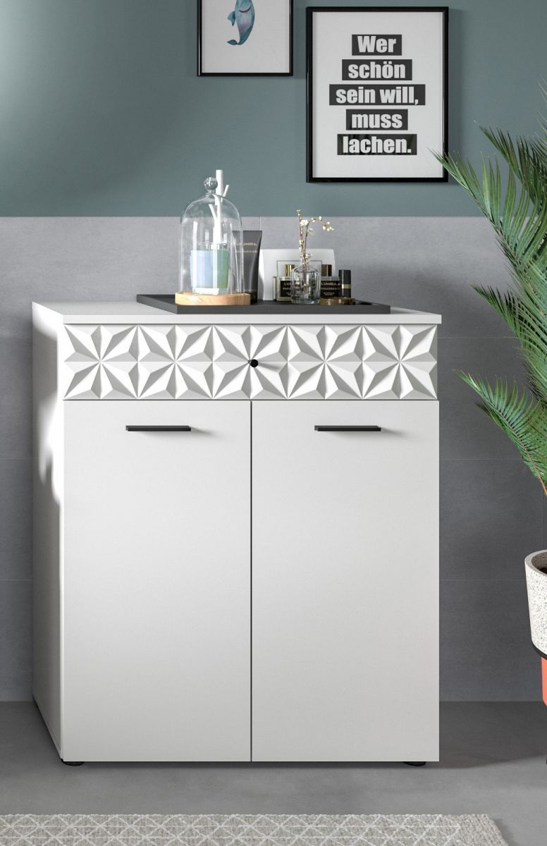 Bad Kommode Badezimmer Unterschrank weiß Hochglanz mit 3-D Struktur Relief 70 x 85 cm
