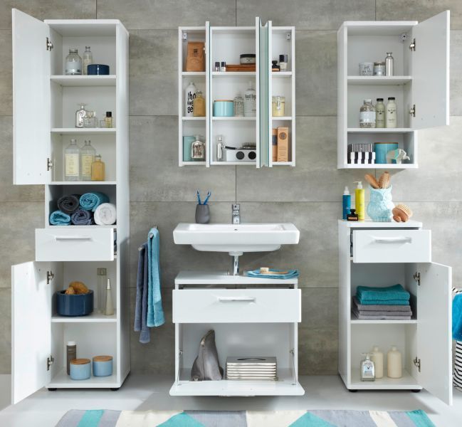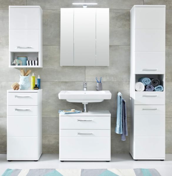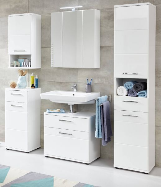 trendteam Bad Möbel Set weiß Hochglanz 5-tlg. 164 cm Badezimmer Möbelset komplett Monte