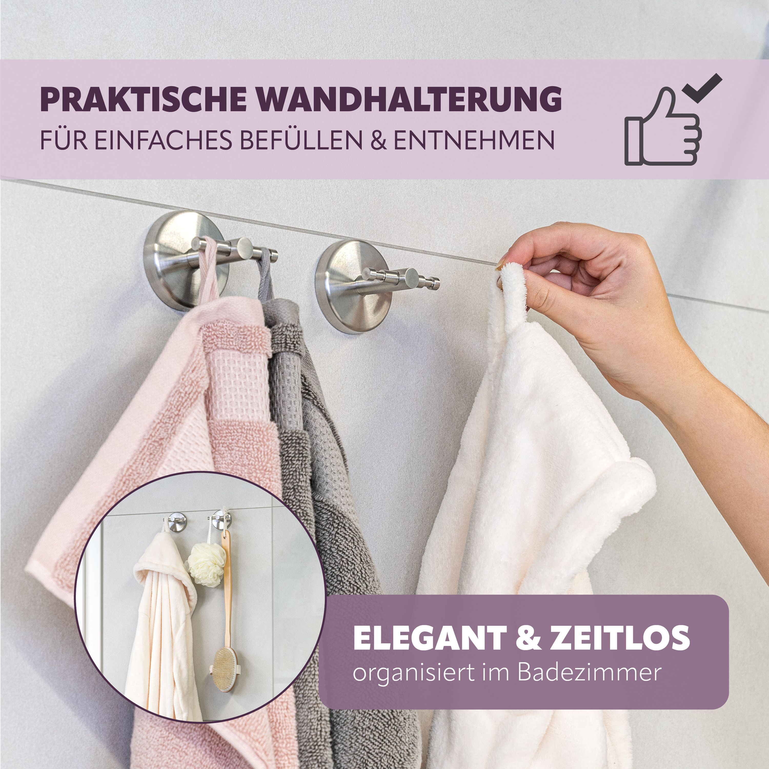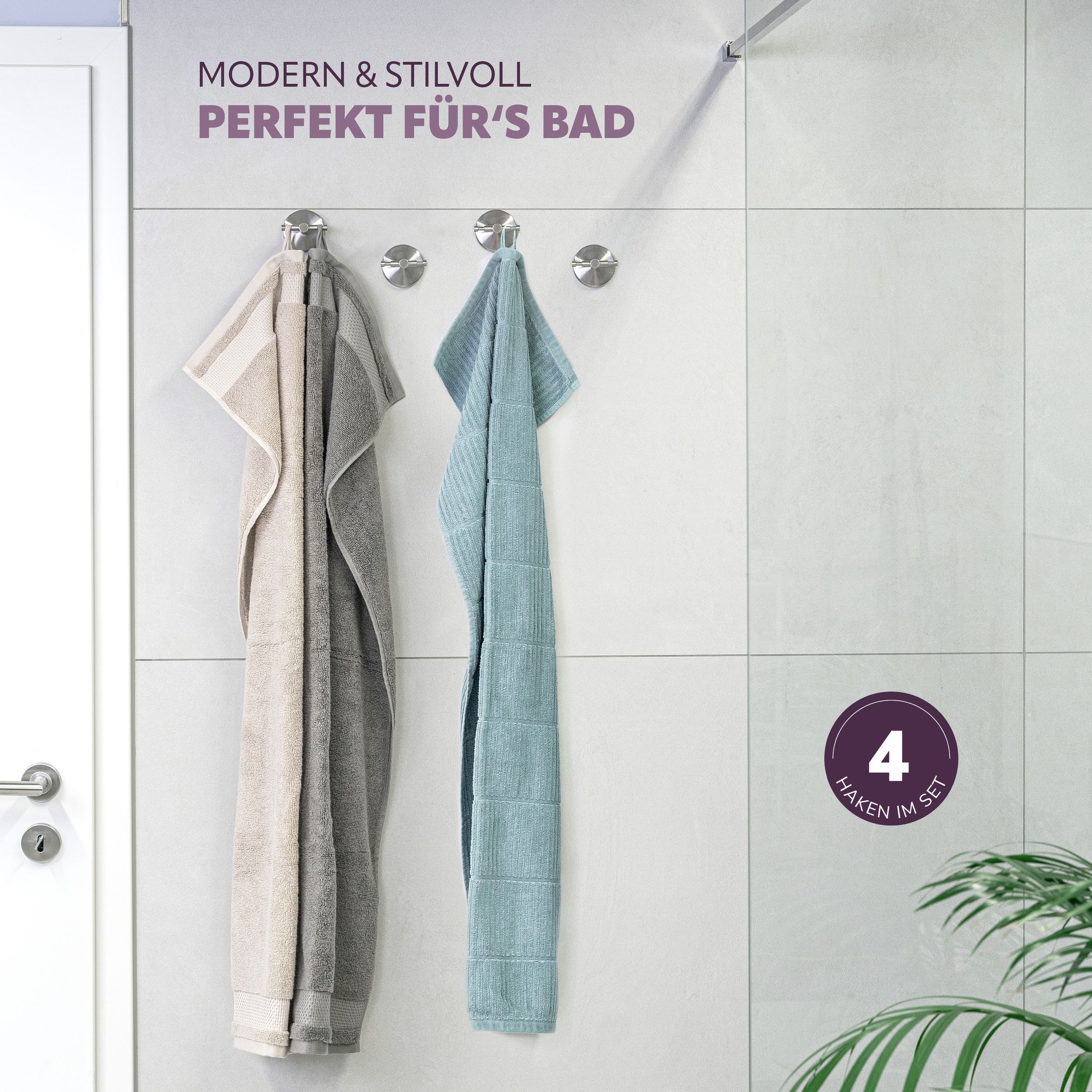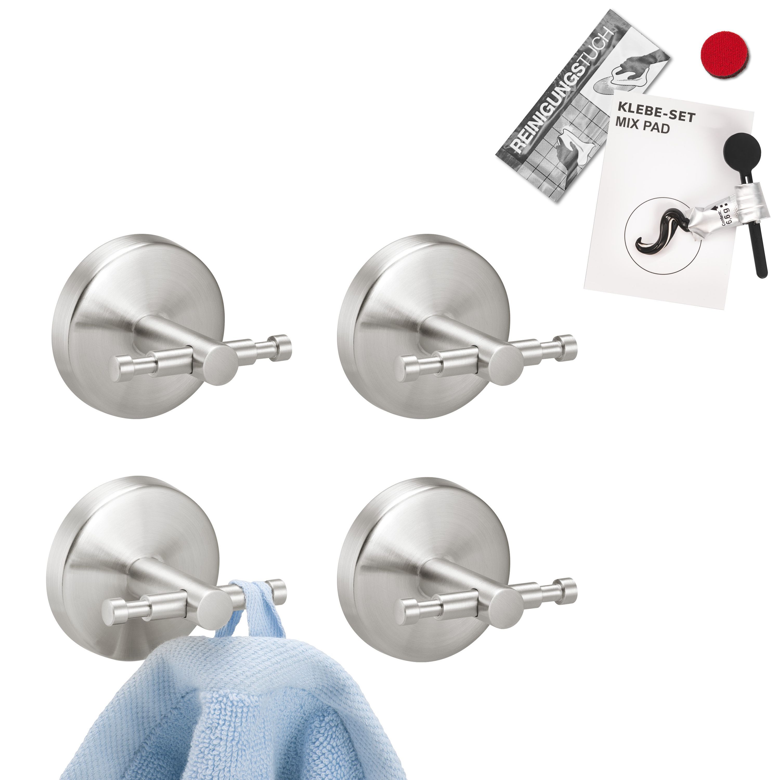 Bad-Serie PIAZZA - Handtuchhaken 4er Set inkl. Klebeset, aus Edelstahl matt