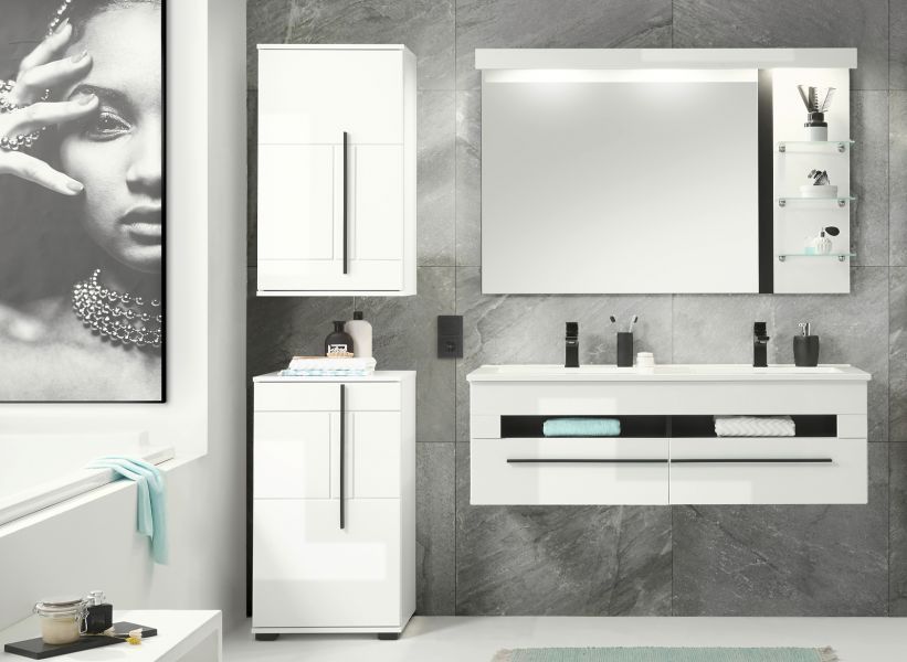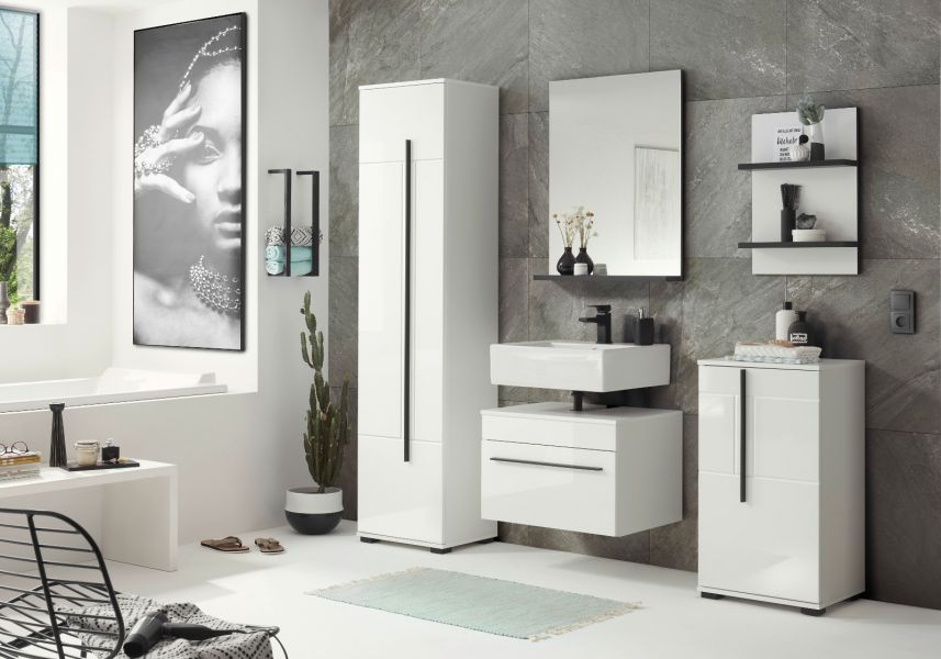 Bad Unterschrank Badezimmer Kommode in weiß Hochglanz Badschrank Design-D