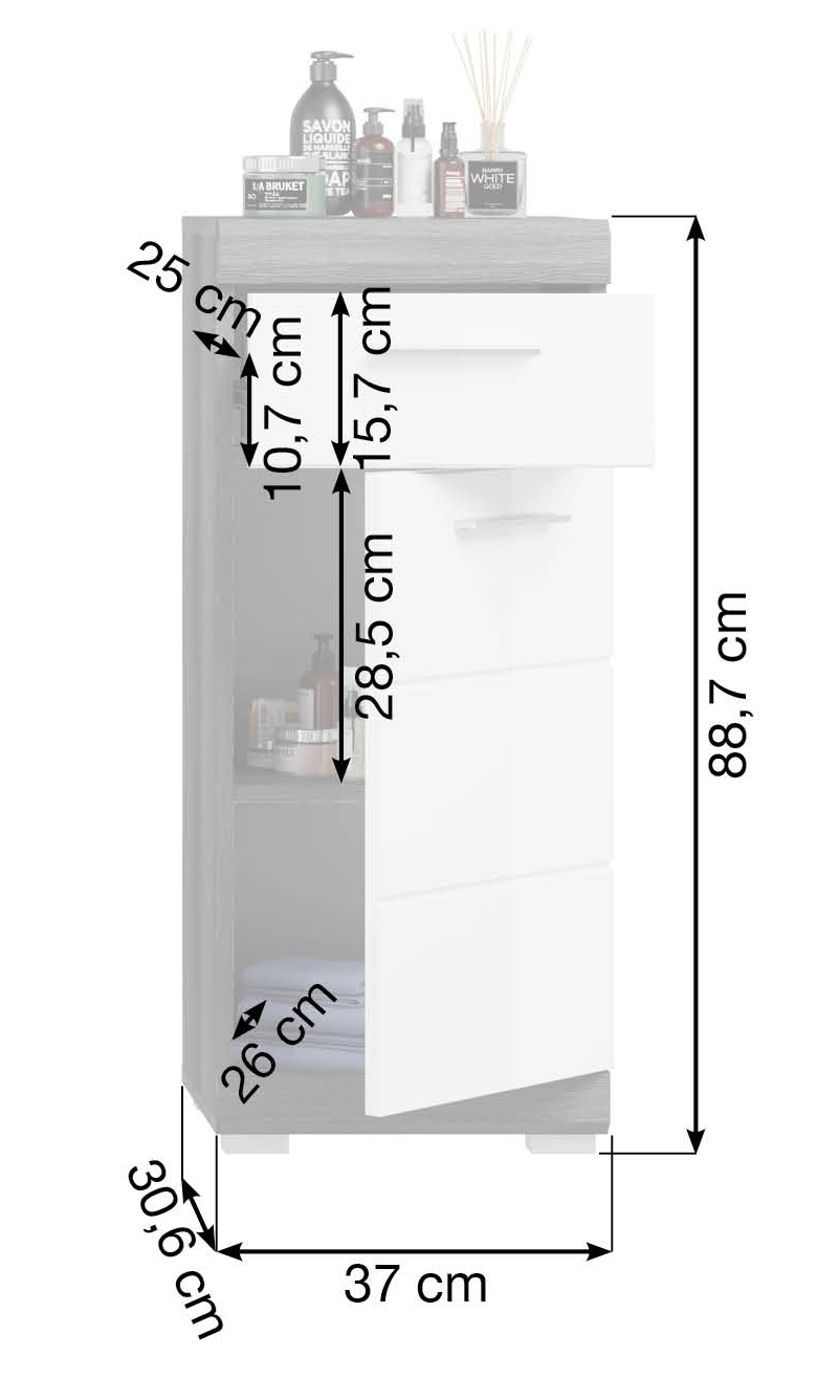 Bad Unterschrank Badezimmer Kommode weiß Hochglanz grau Badschrank Möbel Shawn
