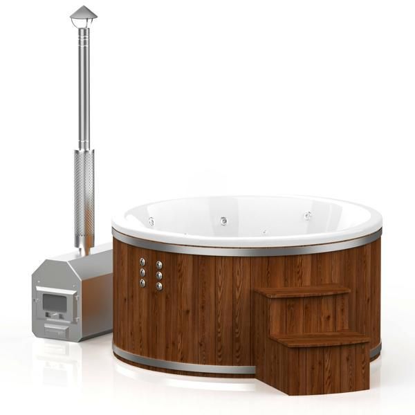 Badefass aus Thermoholz externer Holzofen Whirlpool für Garten und Erholung