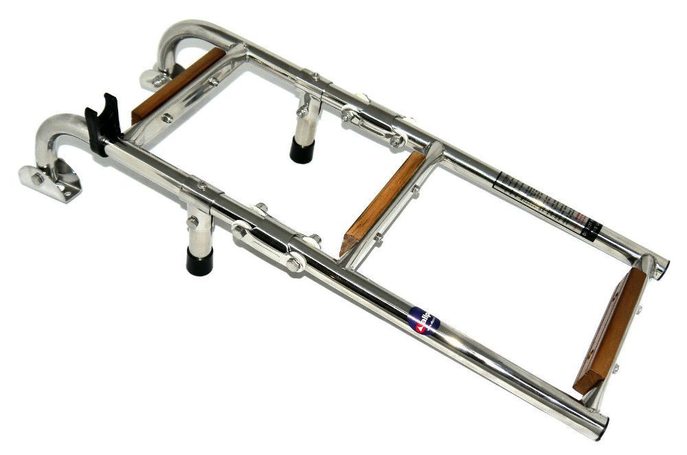 Badeleiter Edelstahl mit Teak Stufen klappbar Heckmontage Bootsleiter Boot Yacht