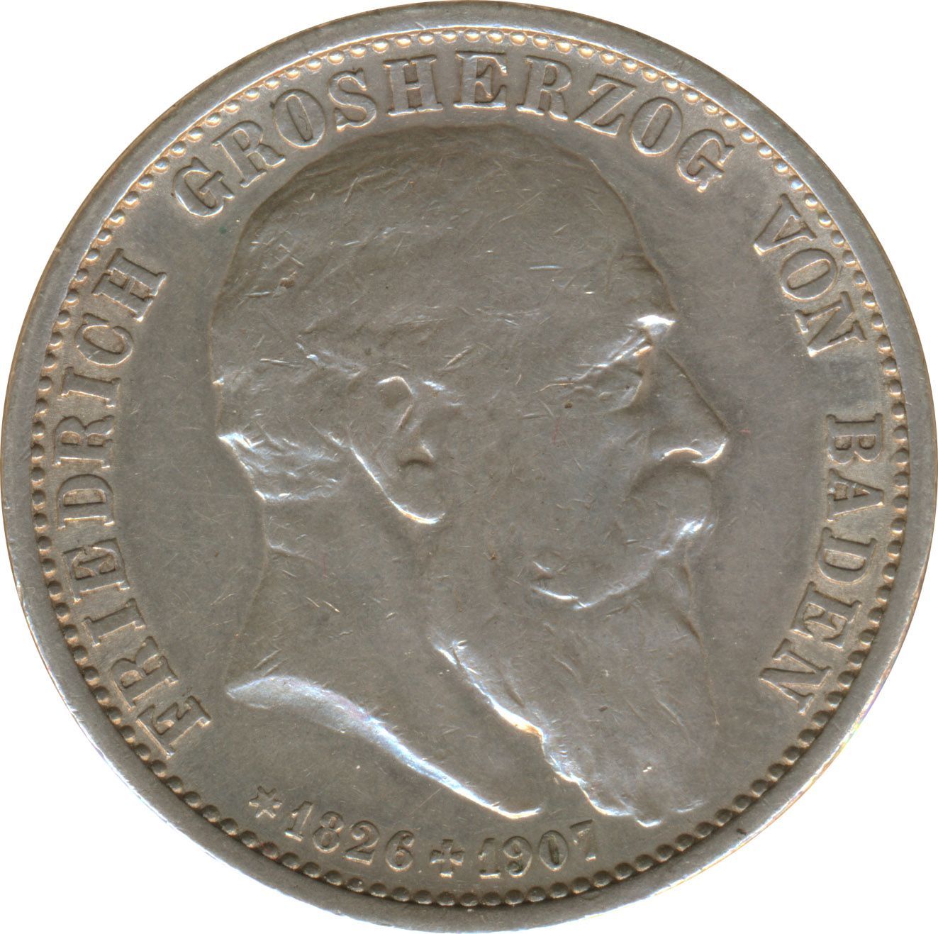 Baden 2 Mark 1907 Auf den Tod von Friedrich I Silber*