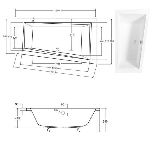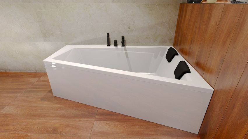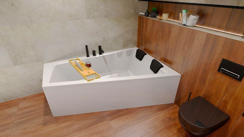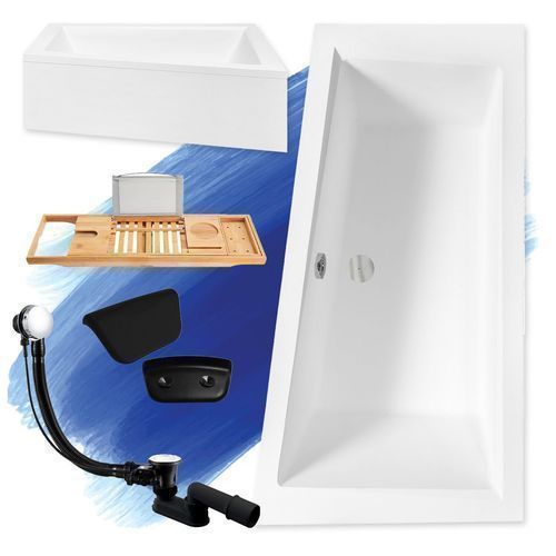 Badewanne Eckwanne 160x90 INTIMA Rechts + AcrylSchürze + Ablage + Kopfstütze + Ablauf
