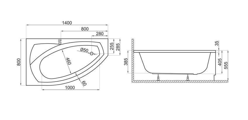 Badewanne Eckwanne Acryl FRIDA 140x80 Links Weiß | Ablauf & Füße GRATIS !