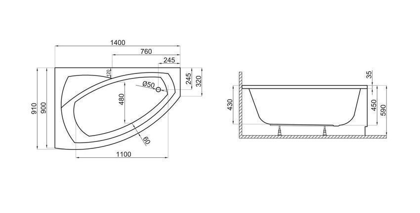 • Badewanne Eckwanne Acryl Ada 140x90 Links | Ablauf & Füße GRATIS !