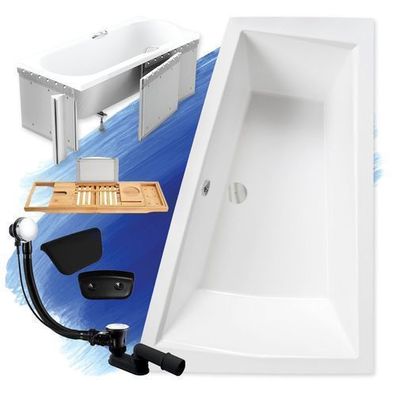• ECOLAM Badewanne 180x80 Avita Eckwanne rechts Acrylwanne für Zwei Schürze Siphon