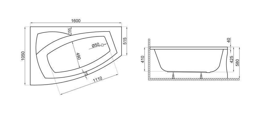 Badewanne Eckwanne Acryl FRIDA 160x105 Rechts Weiß AcrylSchürze |Ablauf & Füße GRATIS