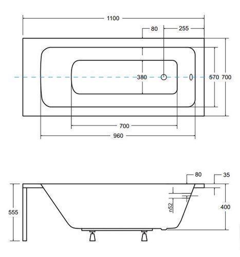 Badewanne Rechteck 110x70 TALIA + Kopfstütze + Bambus Ablage | Ablauf & Füße GRATIS !