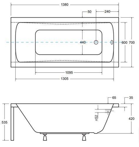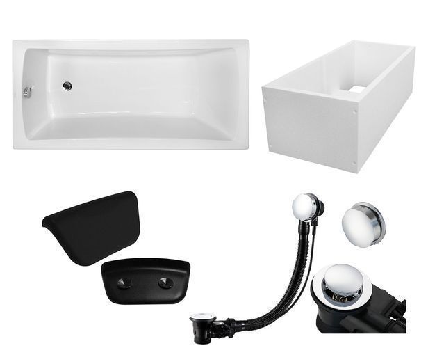 Badewanne Rechteck 140x70 Optimaz + Wannenträger + Kopfstütze | Ablauf & Füße GRATIS
