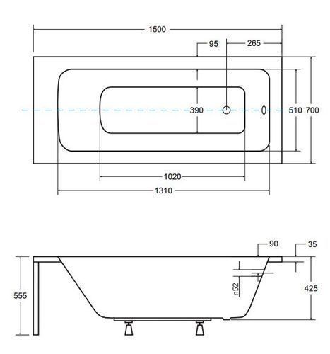 Badewanne Rechteck 150x70 TALIA + Styroporverkleidung + Ablage | Ablauf & Füße GRATIS