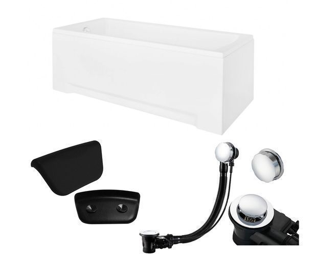Badewanne Rechteck 160x70 Optimaz + AcrylSchürze + Kopfstütze | Ablauf & Füße GRATIS