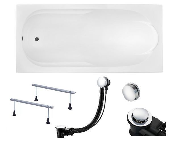 Badewanne Rechteck 190x80 + Wannenträger + Ablage + Kopfstütze | Ablauf & Füße GRATIS