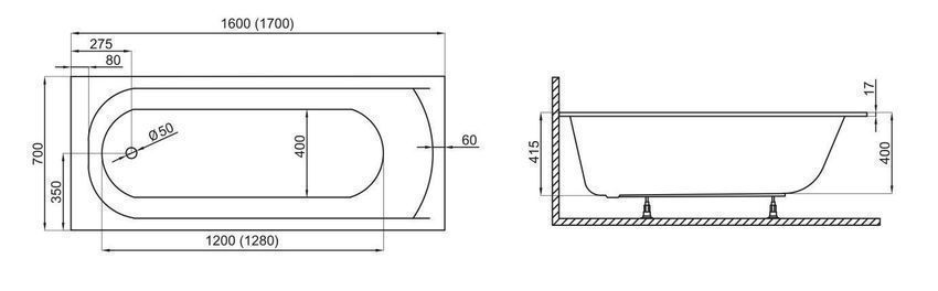 Badewanne Rechteck Acryl Classic SLIM 160x70 Weiß | Ablauf & Füße GRATIS !