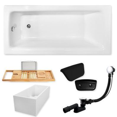 • Badewanne Rechteck 140x70 + Wannenträger + Ablage + Kopfstütze | Ablauf & Füße GRATIS