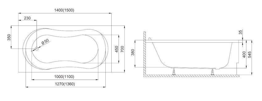 Badewanne Rechteck Acryl GRACJA 150x70 Weiß AcrylSchürze | Ablauf & Füße GRATIS !