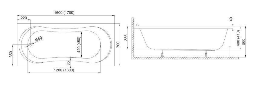 Badewanne Rechteck Acryl GRACJA 170x70 Weiß Wannenträger | Ablauf & Füße GRATIS !