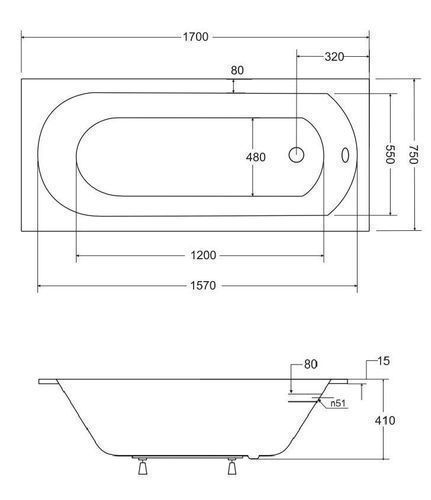 Badewanne Rechteck Acryl Intrica SLIM 170x75 Wannenträger | Ablauf & Füße GRATIS !
