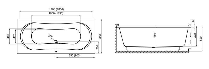 Badewanne Rechteck Acryl LONG 170x80 Weiß AcrylSchürze | Ablauf & Füße GRATIS !