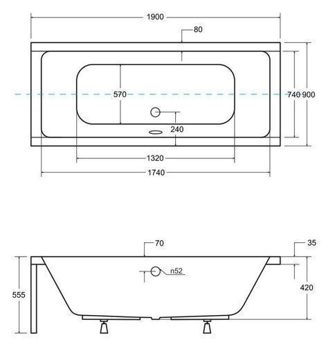 Badewanne Rechteck Acryl QUADRO 190x90 Weiß | Ablauf & Füße GRATIS !