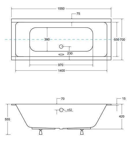 Badewanne Rechteck Acryl QUADRO SLIM 155x70 Weiß Styropor 4cm | Ablauf & Füße GRATIS!