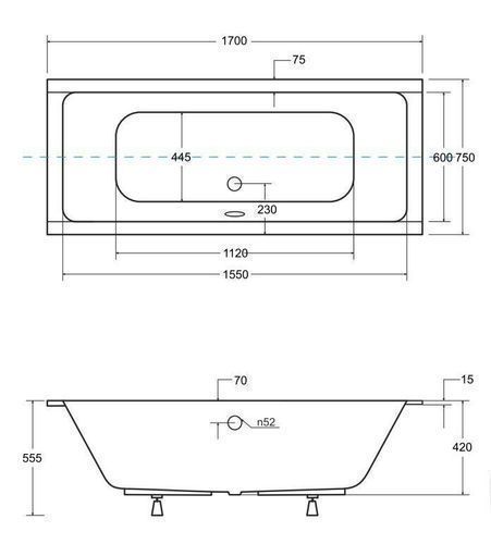 Badewanne Rechteck Acryl QUADRO SLIM 170x75 Weiß | Ablauf & Füße GRATIS !