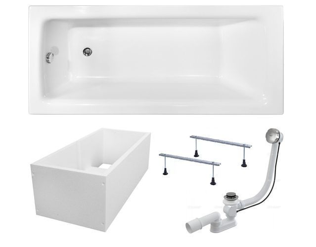 Badewanne Rechteck Acryl TALIA 150x70 Weiß Wannenträger | Ablauf & Füße GRATIS !