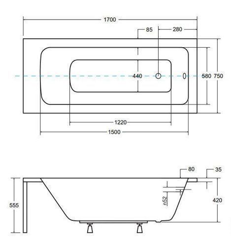 Badewanne Rechteck Acryl TALIA Premium 170x75 Wannenträger | Ablauf & Füße GRATIS !