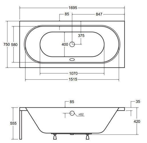 Badewanne Rechteck Acryl VITAE 170x75 Weiß AcrylSchürze | Ablauf & Füße GRATIS !