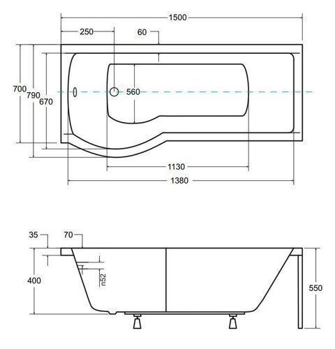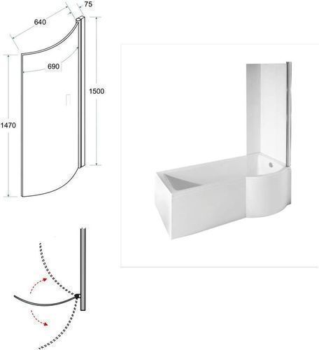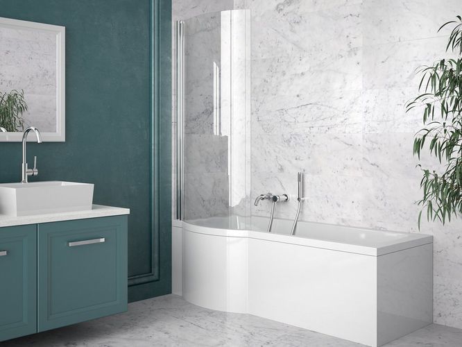 Badewanne Rechteck Inspiro 150x70 Links AcrylSchürze Duschwand | Ablauf & Füße GRATIS