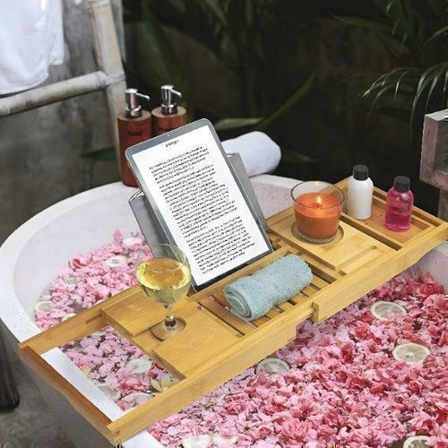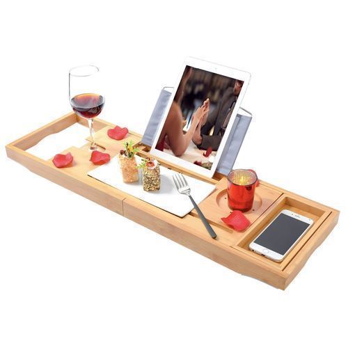 Badewannenablage Badewannentablett 70-104cm Bambus ausziehbar Wannenaufsatz Holzablag