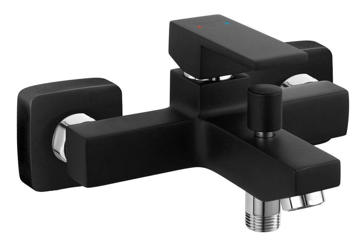 Ferro Badewannenarmatur schwarz eckig Wandarmatur Wannenfüllarmatur quadratisch