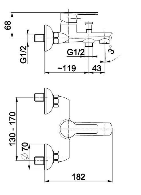 Badewannenarmatur, Wannenarmatur Chrom, Mischbatterie Badewanne mit Druckschalter