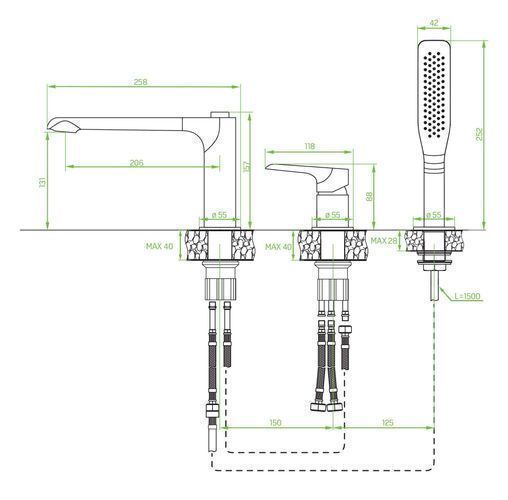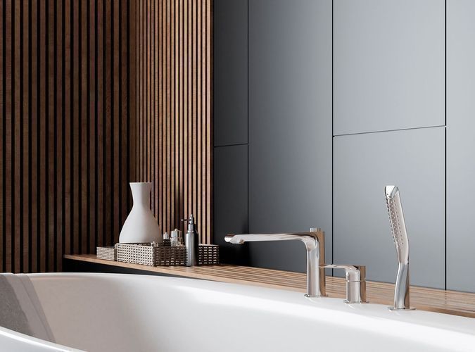 Badewannenarmatur Wasserhahn 3-Loch ALEA Wannenarmatur für Badezimmer in Silber