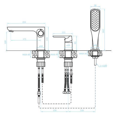 Badewannenarmatur Wasserhahn 3-Loch DIMA Wannenarmatur in Weiß wannenrandarmatur