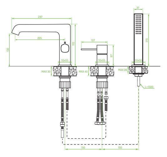 Badewannenarmatur Wasserhahn 3-Loch POLA Wannenarmatur für Badezimmer in Schwarz