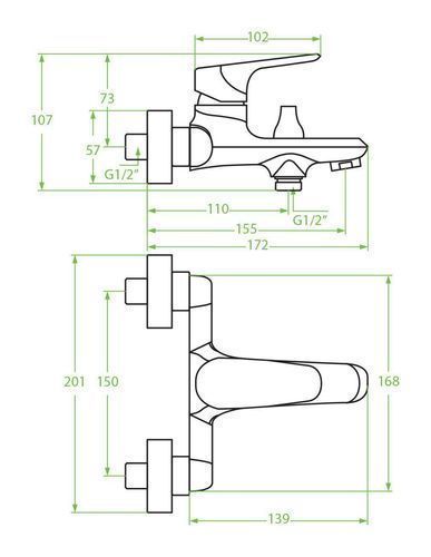 Badewannenarmatur Wasserhahn RONDO Wannenarmatur für Badezimmer in Silber