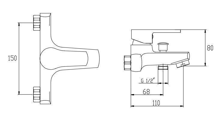 Badewannenarmatur Wasserhahn VERSO Wannenarmatur für Badezimmer in Silber